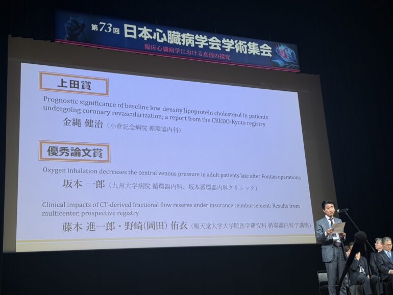 Fontan術後症例に対する酸素投与の効果を検討した論文が、日本心臓病学会誌の優秀論文賞に選ばれました。